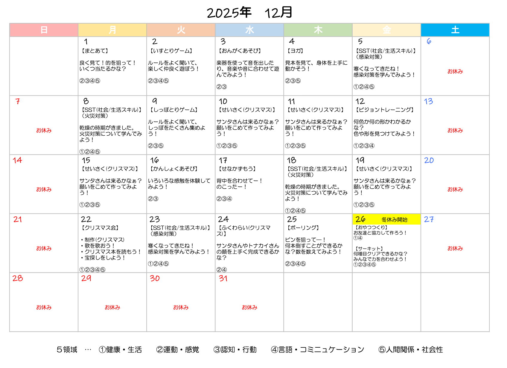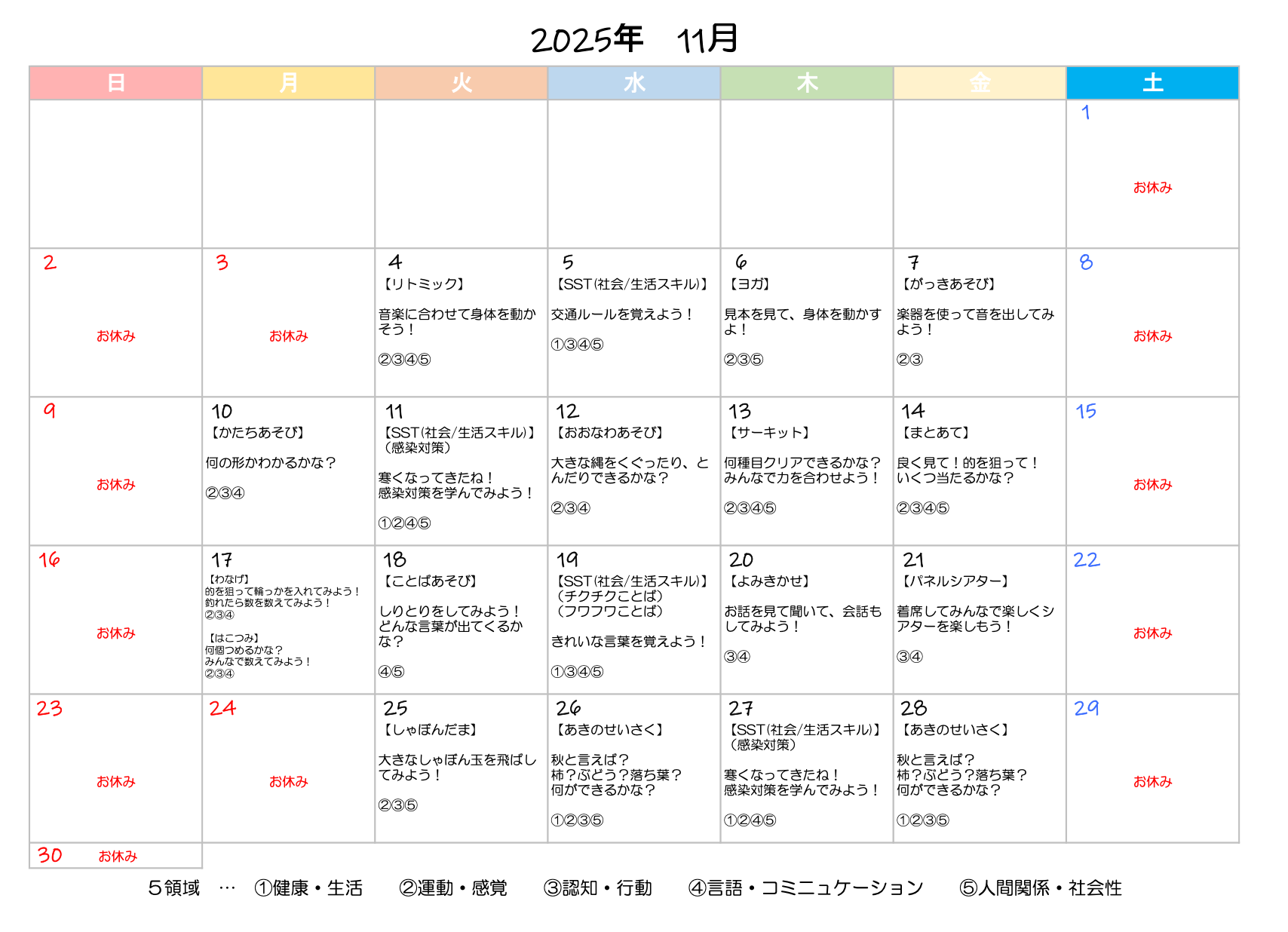 お子さまが他者との関わり方やコミュニケーション能力を向上させるためのソーシャルスキルトレーニングを実施します。